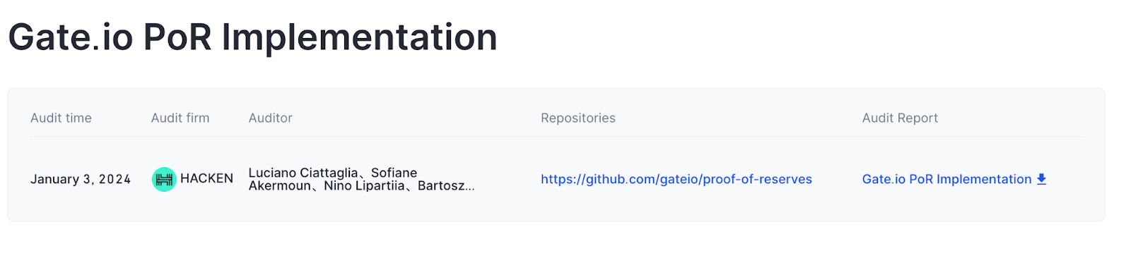 See Gate.io’s Proof of Reserves implementation on GitHub or read more about it here.