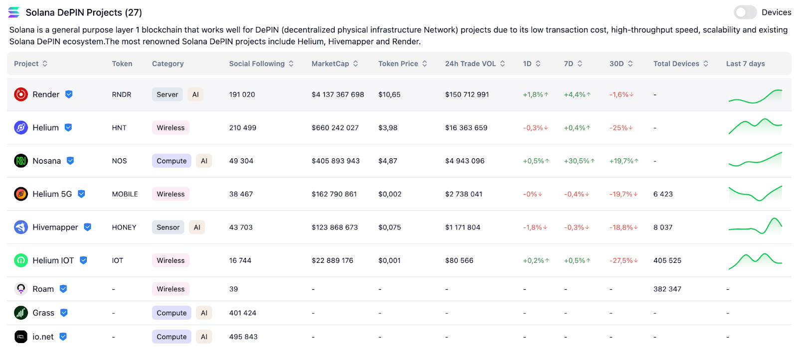As of writing, the Solana ecosystem boasts 27 DePIN projects, according to dePINscan.