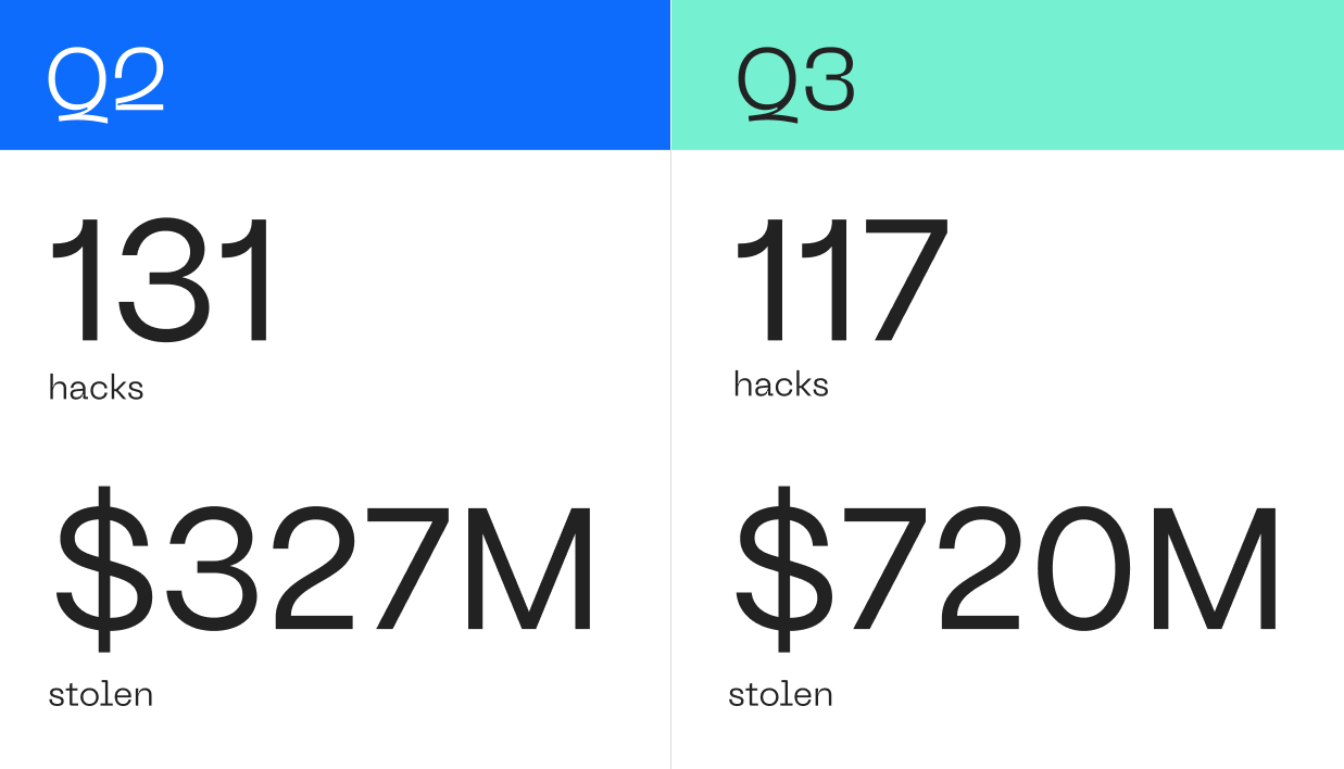 - 117 Major Security Breaches: A staggering $720 million was stolen across 117 major breaches in just three months, highlighting the urgency of tighter security measures.