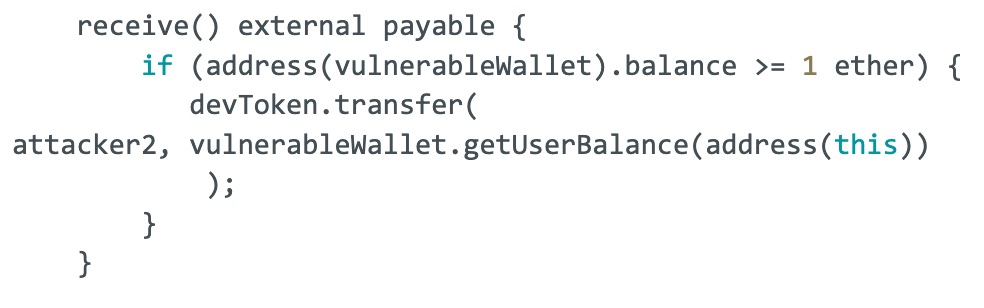 attacker2, vulnerableWallet.getUserBalance(address(this))