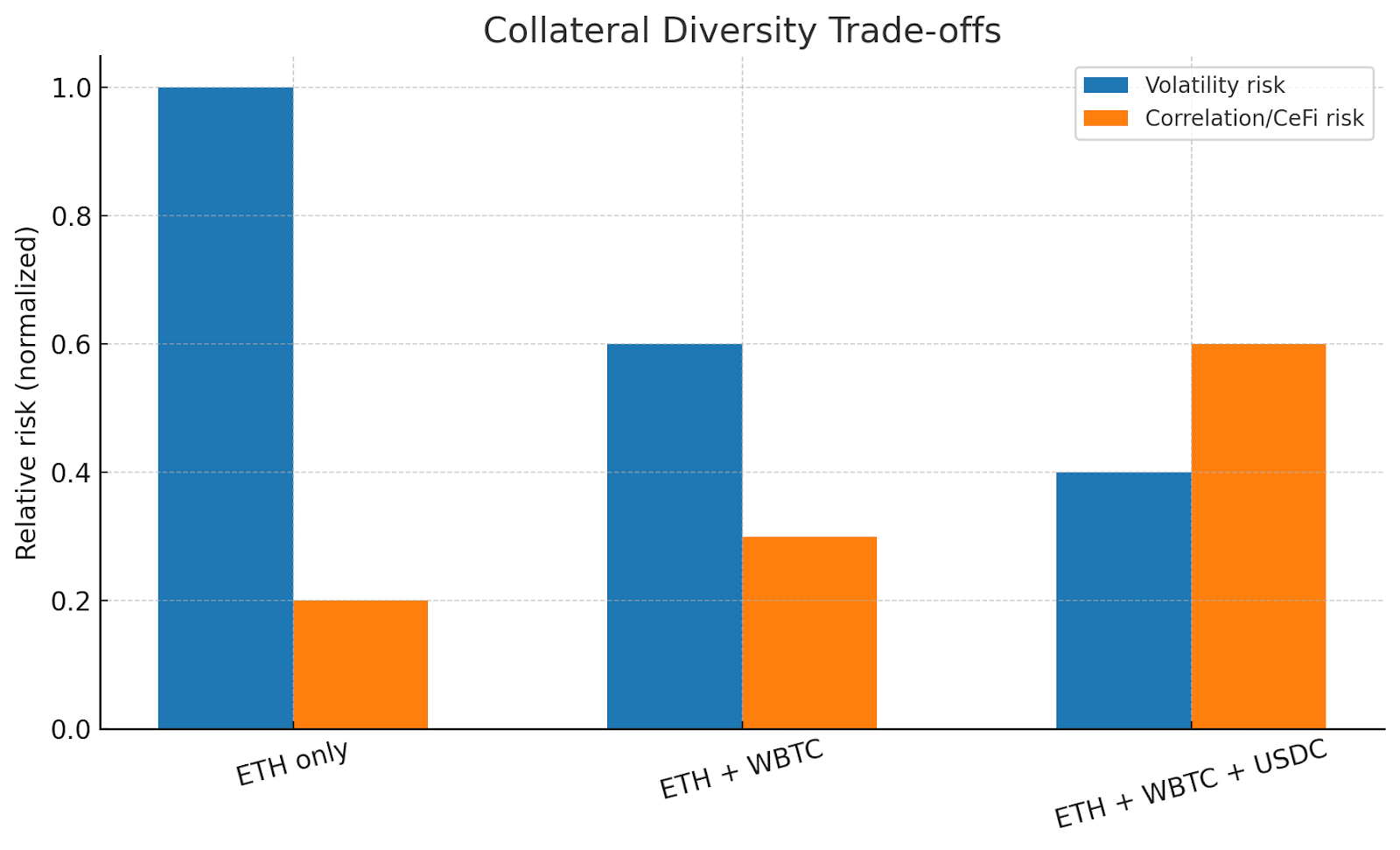 This shows the double-edged nature of diversification: it reduces volatility exposure but can import CeFi reliance into DeFi systems.