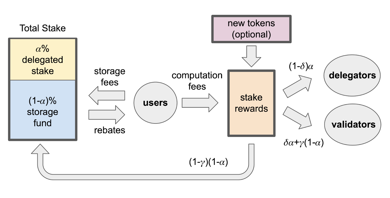 The following diagram illustrates the staking rewards distribution flow for SUI.