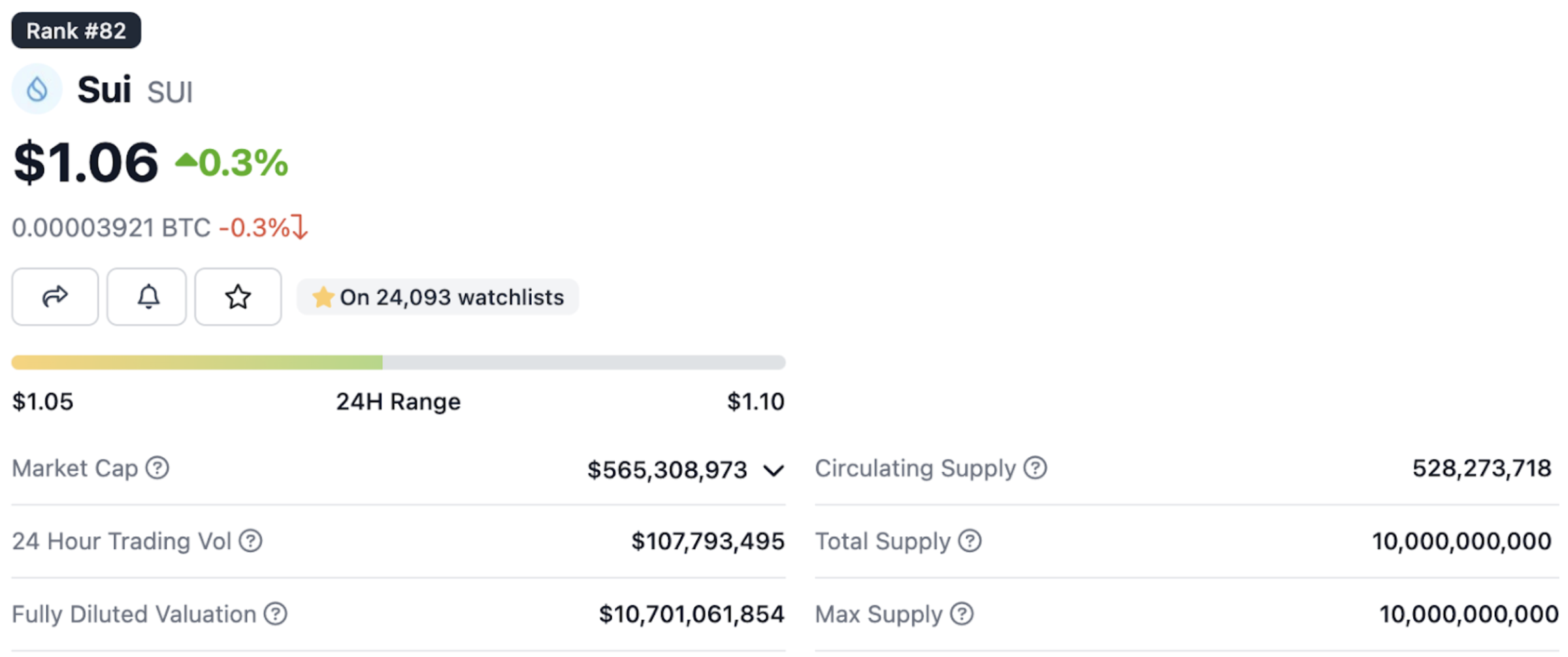As of May 2023, there’ve been around 530 million SUI in circulation, while the max supply is limited to 10 billion tokens. The most recent SUI token distribution was disclosed in December 2022.