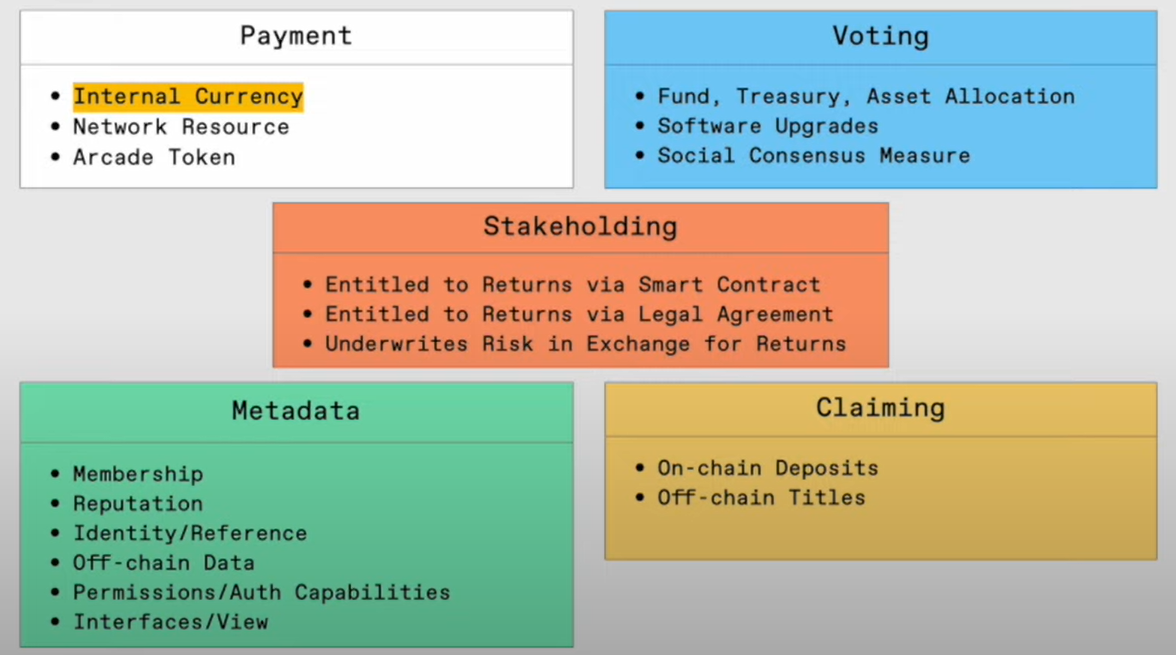 Tokens can be viewed as customizable Lego blocks creating diverse solutions depending on design goals and constraints. They serve multiple purposes, such as utility, governance, rewards, and digital assets.