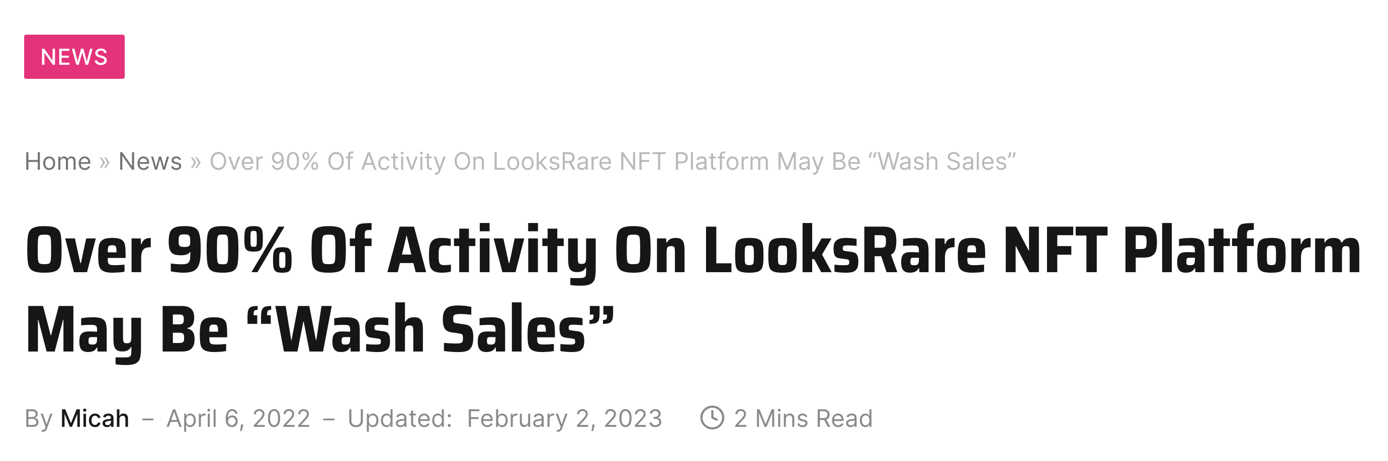 Wash trading at LooksRare NFT Platform. NFT Evening