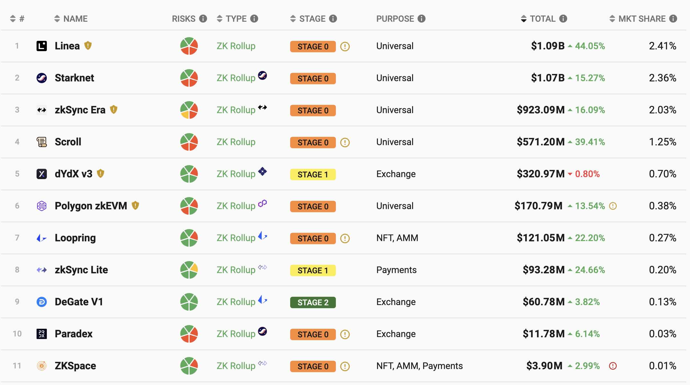 The following data shows the number of transactions on every rollup, giving you an idea of how popular each ZK rollup is.