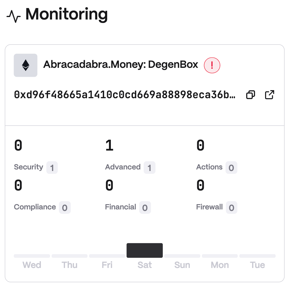 - Implement onchain monitoring & automated response. On-chain anomaly detection (e.g., large uncollateralized borrows, sudden DegenBox outflows) coupled with automated throttles/pauses can limit damage while teams triage.