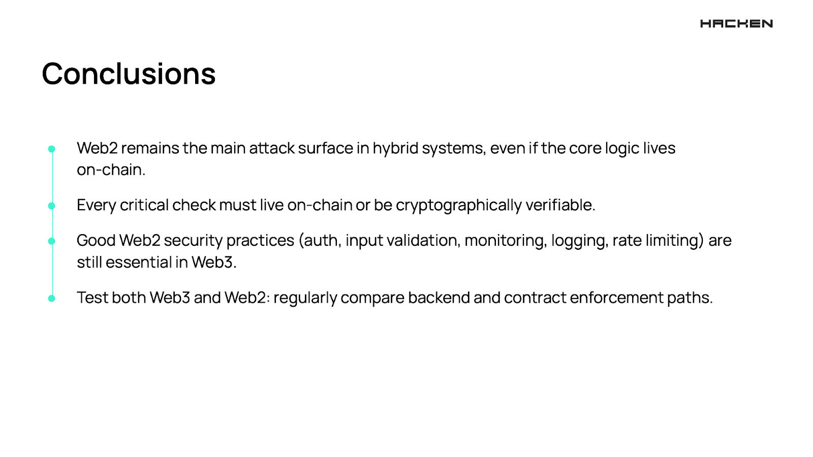 The session goes deeper into how these hybrid vulnerabilities show up in real products, how attackers take advantage of them, and how teams fixed the issues in production. It covers why Web2 often gets overlooked in onchain security, the failure patterns that keep repeating across audits, real examples from a Web3 game, and practical steps to strengthen both layers of a hybrid app.