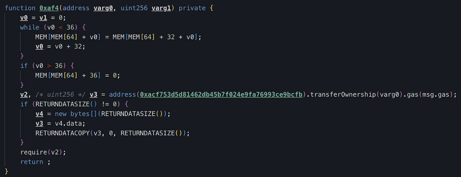 The attack was executed using a coordinated network of 8 different accounts and a specific delegated contract. Decompiling the code revealed strict execution gating, limiting the contract to specific actors.