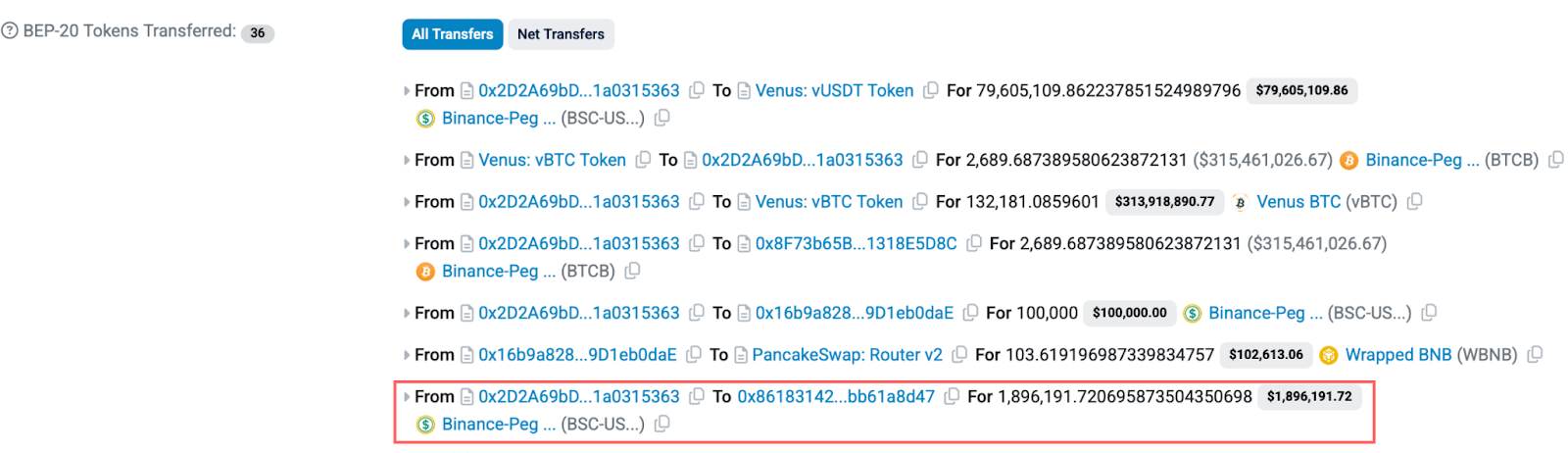 After bypassing the safety checks and manipulating the protocol’s price oracles, the attacker sold all the NGP they had purchased before the exploit for a total of 1.9M USDT.