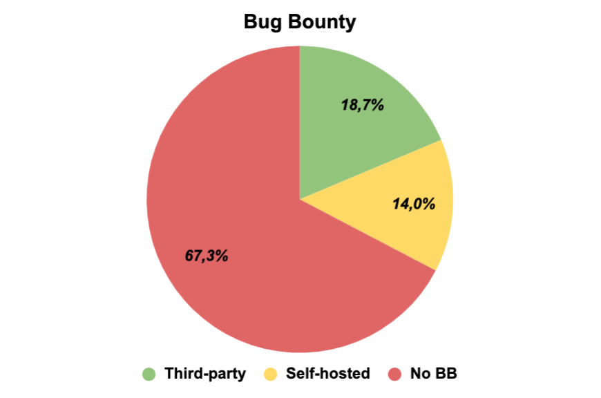 The share of bug bounty programs managed by third-party platforms has increased by 50% since the beginning of 2021. The majority of bug bounty programs are hosted on the following platforms: